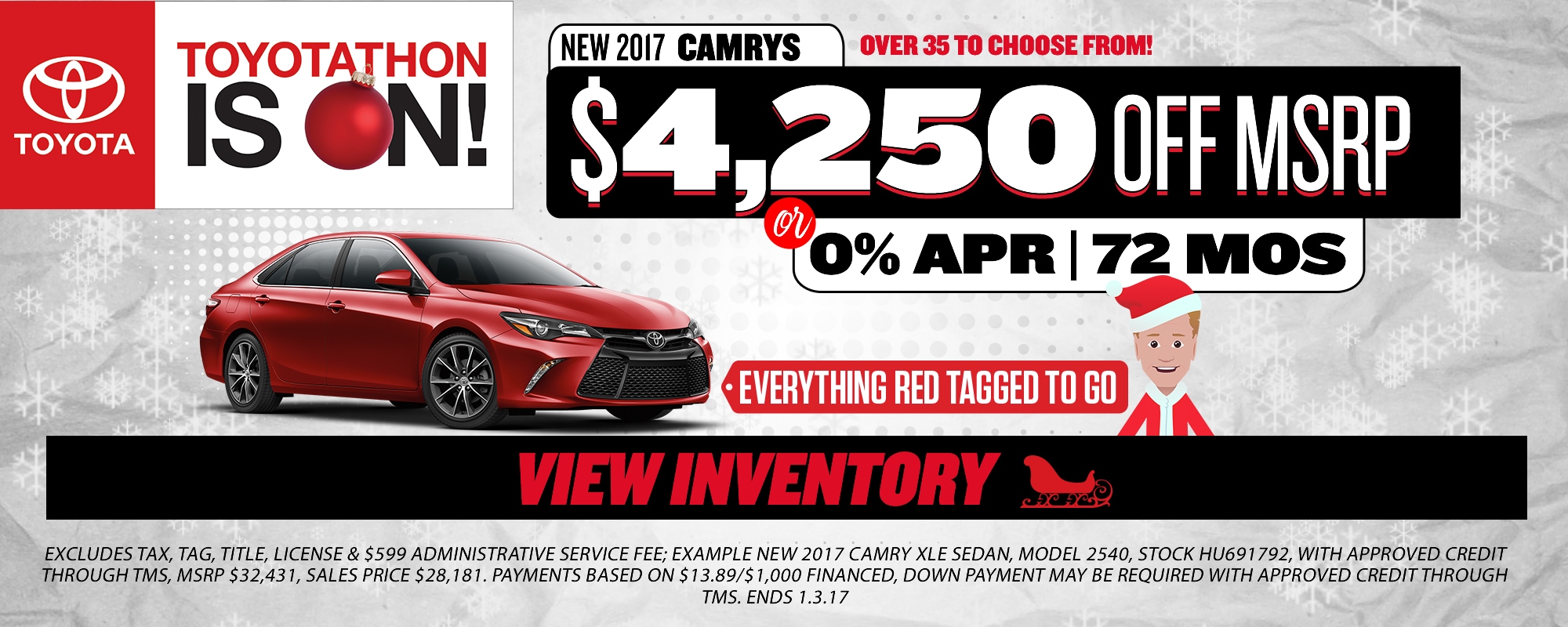 Customers can enjoy great specials on Toyota's popular models. All offers end 1/3/2017 so don't wait to schedule your test drive with Fred Anderson Toyota of Sanford.