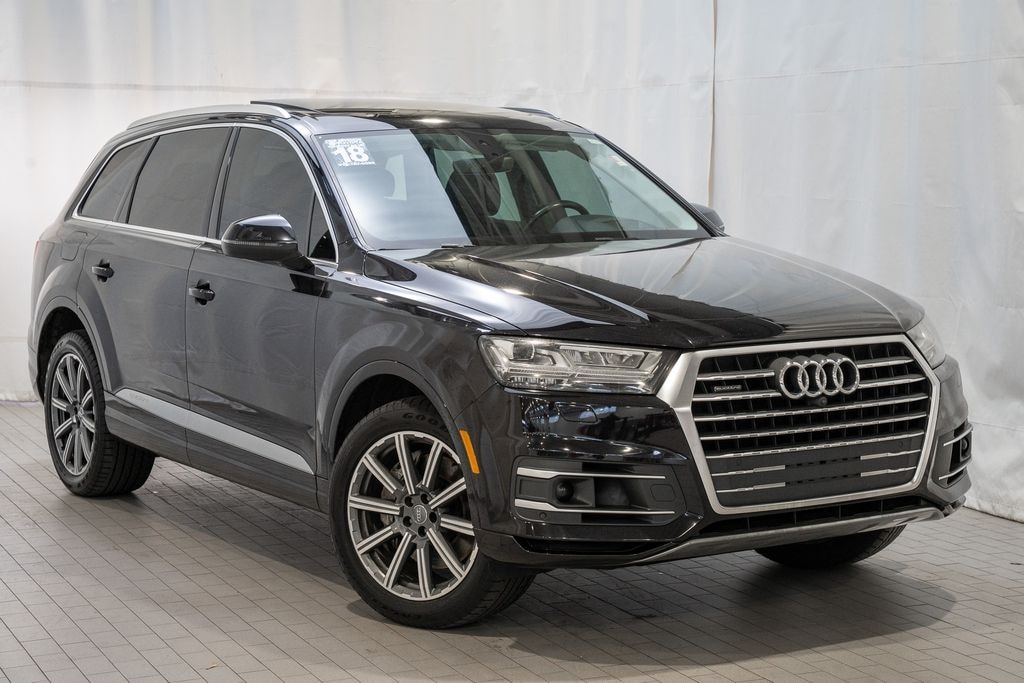 Clean CARFAX. Alloy wheels / Premium Wheels, Bluetooth, Hands-Free, Sunroof / Panoramic Roof, We will buy your car and pay top dollar for it, even if you don't buy ours!!, Head-Up Display. Check out all these great options Head-Up Display, 10 Speakers, 3.204 Axle Ratio, 3rd row seats: bench, 4-Wheel Disc Brakes, ABS brakes, Air Conditioning, Alloy wheels, AM/FM radio: SiriusXM, Auto-dimming Rear-View mirror, Automatic temperature control, Brake assist, Bumpers: body-color, CD player, Compass, Delay-off headlights, Driver door bin, Driver vanity mirror, Driver's Seat Mounted Armrest, Dual front impact airbags, Dual front side impact airbags, Electronic Stability Control, Exterior Parking Camera Rear, Four wheel independent suspension, Front anti-roll bar, Front Bucket Seats, Front dual zone A/C, Front fog lights, Front reading lights, Fully automatic headlights, Garage door transmitter: HomeLink, Heated door mirrors, Heated Front Bucket Seats, Heated front seats, High intensity discharge headlights: Xenon plus, Illuminated entry, Leather Seating Surfaces, Leather Shift Knob, Leather steering wheel, Low tire pressure warning, Memory seat, Occupant sensing airbag, Outside temperature display, Overhead airbag, Panic alarm, Passenger door bin, Passenger seat mounted armrest, Passenger vanity mirror, Power door mirrors, Power driver seat, Power Liftgate, Power moonroof, Power passenger seat, Power steering, Power windows, Radio data system, Radio: MMI Radio Plus w/Audi Sound System, Rain sensing wipers, Rear air conditioning, Rear anti-roll bar, Rear fog lights, Rear reading lights, Rear seat center armrest, Rear window defroster, Rear window wiper, Remote keyless entry, Roof rack: rails only, Security system, Speed control, Speed-sensing steering, Split folding rear seat, Spoiler, Steering wheel mounted audio controls, Tachometer, Telescoping steering wheel, Tilt steering wheel, Traction control, Trip computer, Turn signal indicator mirrors, Variably intermittent wipers, and Wheels: 19" 5-V-Spoke DesignStop by and test drive today. Let us show you how affordable we can make it. Remember, we always give you more for your trade and we will buy your vehicle even if you don't buy one from us. See online @ www.FredAndersonToyota.com or see in person @ Fred Anderson Toyota 9101 Glenwood Ave. Raleigh NC, 27617. 2018 Audi Q7 3.0T Prestige quattro quattro Black Metallic 8-Speed Automatic with Tiptronic
