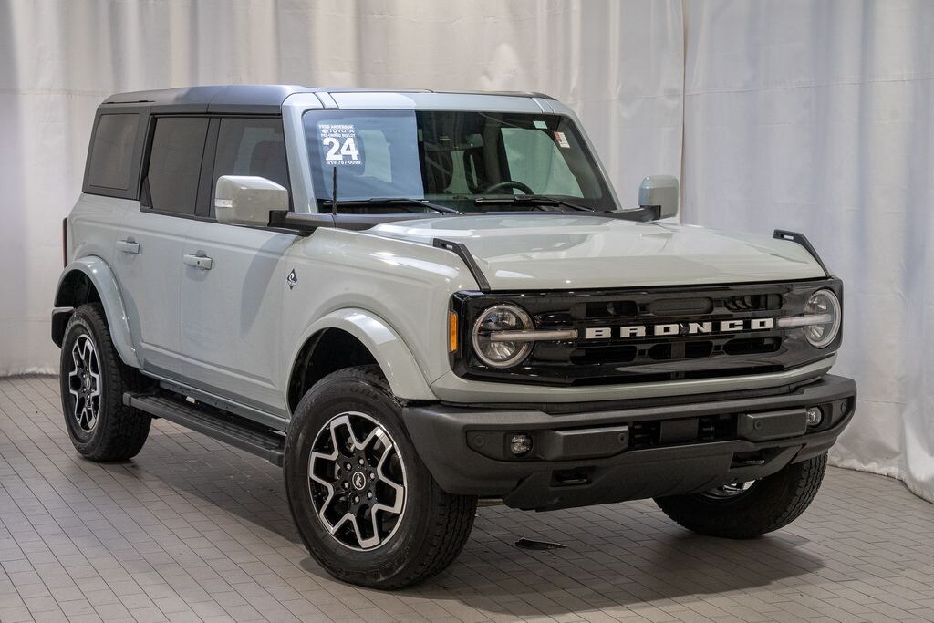 CARFAX One-Owner. Clean CARFAX. *Full Family Plan* INCLUDES OIL CHANGES FOR LIFE!, Still Under Factory Powertrain Warranty!!, Still Under Factory Warranty!!, Only One Owner and Accident Free Carfax!!, Accident Free Carfax!!, Alloy wheels / Premium Wheels, Bluetooth, Hands-Free, Star Safety System with Active Breaking Technologies, We will buy your car and pay top dollar for it, even if you don't buy ours!!. Check out all these great options Equipment Group 314A High/Lux Package (10 Speakers w/Subwoofer, 360-Degree Camera, Adaptive Cruise Control, Additional Sound Deadening, Evasive Steering Assist, Front Parking Sensors, Heated Steering Wheel, Information on Demand Panel, Radio: B&O Sound System by Bang & Olufsen, Sideview Mirrors, Universal Garage Door Opener, and Wireless Charging Pad), 18" Bright Machined Aluminum Wheels, 3.73 Axle Ratio, 4-Wheel Disc Brakes, 7 Speakers, ABS brakes, Air Conditioning, Alloy wheels, AM/FM radio: SiriusXM with 360L, AM/FM Stereo, Auto High-beam Headlights, Auto-dimming Rear-View mirror, Automatic temperature control, Auxiliary Switches, Brake assist, Carbonized Gray Molded-In-Color Hard Top, Compass, Connected Navigation, Delay-off headlights, Driver door bin, Driver vanity mirror, Dual front impact airbags, Dual front side impact airbags, Electronic Stability Control, Emergency communication system: 911 Assist, Exterior Parking Camera Rear, Front anti-roll bar, Front Bucket Seats, Front Center Armrest, Front dual zone A/C, Front fog lights, Front reading lights, Front Row Top Panels Storage Bag, Front wheel independent suspension, Fully automatic headlights, Hard Top Sound Deadening Headliner, Heated door mirrors, Heated front seats, Heated Leather-Trimmed/Vinyl Bucket Seats, Illuminated entry, Integrated roll-over protection, Leather Shift Knob, Low tire pressure warning, Navigation system: Connected Navigation, Occupant sensing airbag, Outside temperature display, Overhead airbag, Overhead console, Panic alarm, Passenger door bin, Passenger vanity mirror, Power door mirrors, Power driver seat, Power passenger seat, Power steering, Power windows, Radio data system, Rear seat center armrest, Rear-Window Defroster & Washer, Remote keyless entry, Security system, SiriusXM Radio w/360L, Speed control, Split folding rear seat, Steering wheel mounted audio controls, SYNC 4, Tachometer, Telescoping steering wheel, Tilt steering wheel, Traction control, Trip computer, Variably intermittent wipers, and VoltmeterStop by and test drive today. Let us show you how affordable we can make it. Remember, we always give you more for your trade and we will buy your vehicle even if you don't buy one from us. See online @ www.FredAndersonToyota.com or see in person @ Fred Anderson Toyota 9101 Glenwood Ave. Raleigh NC, 27617. Recent Arrival! 2024 Ford Bronco Outer Banks 4WD Cactus Gray 10-Speed Automatic