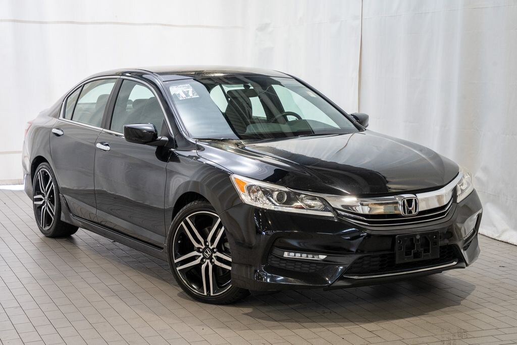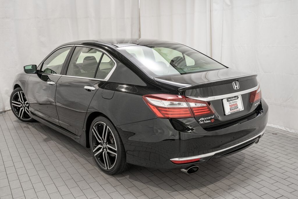 Bluetooth, Hands-Free, We will buy your car and pay top dollar for it, even if you don't buy ours!!, Black Cloth. Odometer is 34612 miles below market average! Check out all these great options Black Cloth, 19" Alloy Wheels, 4 Speakers, 4-Wheel Disc Brakes, ABS brakes, Air Conditioning, Alloy wheels, AM/FM radio, Automatic temperature control, Brake assist, Bumpers: body-color, CD player, Cloth Seat Trim, Delay-off headlights, Driver door bin, Driver vanity mirror, Dual front impact airbags, Dual front side impact airbags, Electronic Stability Control, Exterior Parking Camera Rear, Four wheel independent suspension, Front anti-roll bar, Front Bucket Seats, Front Center Armrest, Front dual zone A/C, Front fog lights, Front reading lights, Fully automatic headlights, Illuminated entry, Leather Shift Knob, Low tire pressure warning, Occupant sensing airbag, Outside temperature display, Overhead airbag, Overhead console, Panic alarm, Passenger door bin, Passenger vanity mirror, Power door mirrors, Power driver seat, Power steering, Power windows, Radio data system, Radio: 160-Watt AM/FM Audio System, Rear anti-roll bar, Rear seat center armrest, Rear window defroster, Remote keyless entry, Security system, Speed control, Speed-sensing steering, Speed-Sensitive Wipers, Split folding rear seat, Spoiler, Steering wheel mounted audio controls, Tachometer, Telescoping steering wheel, Tilt steering wheel, Traction control, Trip computer, and Variably intermittent wipersStop by and test drive today. Let us show you how affordable we can make it. Remember, we always give you more for your trade and we will buy your vehicle even if you don't buy one from us. See online @ www.FredAndersonToyota.com or see in person @ Fred Anderson Toyota 9101 Glenwood Ave. Raleigh NC, 27617. Recent Arrival! 2017 Honda Accord Sport FWD Crystal Black Pearl CVT