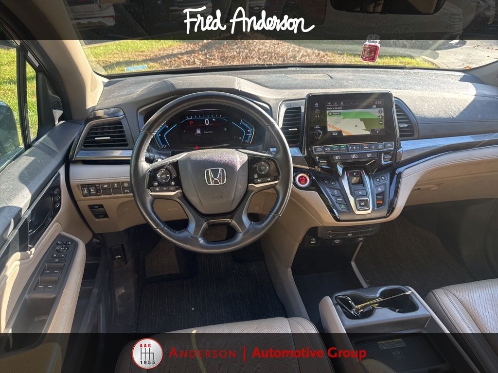 CARFAX One-Owner. Only One Owner and Accident Free Carfax!!, Navigation, Alloy wheels / Premium Wheels, Bluetooth, Hands-Free, Leather Seats, Local Trade, Star Safety System with Active Breaking Technologies, Keyless Entry, Keyless Start, Backup Camera, Sunroof / Panoramic Roof, We will buy your car and pay top dollar for it, even if you don't buy ours!!, Rear Entertainment System, DVD-Audio, Navigation system: Honda Satellite-Linked Navigation System, Radio: 550-Watt AM/FM/HD Premium Audio System. Odometer is 13466 miles below market average! Check out all these great options DVD-Audio, Navigation system: Honda Satellite-Linked Navigation System, Radio: 550-Watt AM/FM/HD Premium Audio System, 11 Speakers, 3.61 Axle Ratio, 3rd row seats: split-bench, 4-Wheel Disc Brakes, A/V remote: CabinControl, ABS brakes, Adaptive Cruise Control: Adaptive Cruise Control (ACC) with Low-Speed Follow, Air Conditioning, Alloy wheels, AM/FM radio: SiriusXM, Anti-whiplash front head restraints, Apple CarPlay/Android Auto, Auto High-beam Headlights, Auto-dimming door mirrors, Auto-dimming Rear-View mirror, Automatic temperature control, Blind Spot Information (BSI) System warning, Brake assist, Bumpers: body-color, CD player, Compass, Delay-off headlights, Driver door bin, Driver vanity mirror, Driver's Seat Mounted Armrest, Dual front impact airbags, Dual front side impact airbags, Electronic Stability Control, Emergency communication system: HondaLink, Exterior Parking Camera Rear, Forward collision: Collision Mitigation Braking System (CMBS) + FCW mitigation, Four wheel independent suspension, Front anti-roll bar, Front Bucket Seats, Front dual zone A/C, Front fog lights, Front reading lights, Fully automatic headlights, Garage door transmitter: HomeLink, Headphones, Heated & Ventilated Front Bucket Seats, Heated door mirrors, Heated front seats, Heated steering wheel, Illuminated entry, Knee airbag, Lane departure: Lane Keeping Assist System (LKAS) active, Leather Seat Trim, Leather steering wheel, Low tire pressure warning, Memory seat, Occupant sensing airbag, Outside temperature display, Overhead airbag, Overhead console, Panic alarm, Passenger door bin, Passenger seat mounted armrest, Passenger vanity mirror, Power door mirrors, Power driver seat, Power Liftgate, Power moonroof, Power passenger seat, Power steering, Power windows, Radio data system, Rain sensing wipers, Rear air conditioning, Rear anti-roll bar, Rear audio controls, Rear reading lights, Rear seat center armrest, Rear window defroster, Rear window wiper, Reclining 3rd row seat, Remote keyless entry, Security system, Speed control, Speed-sensing steering, Speed-Sensitive Wipers, Split folding rear seat, Spoiler, Steering wheel mounted audio controls, Tachometer, Telescoping steering wheel, Tilt steering wheel, Traction control, Trip computer, Turn signal indicator mirrors, Variably intermittent wipers, Ventilated front seats, and Wheels: 19" Unique Machine-Finished AlloyStop by and test drive today. Let us show you how affordable we can make it. Remember, we always give you more for your trade and we will buy your vehicle even if you don't buy one from us. See online @ www.FredAndersonToyota.com or see in person @ Fred Anderson Toyota 9101 Glenwood Ave. Raleigh NC, 27617. Recent Arrival! 2021 Honda Odyssey Elite FWD Deep Scarlet Pearl 10-Speed Automatic