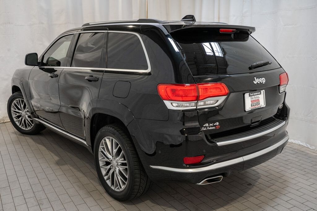 Navigation, Bluetooth, Hands-Free, Star Safety System with Active Breaking Technologies, We will buy your car and pay top dollar for it, even if you don't buy ours!!, 4WD. Check out all these great options Platinum Series Group (Regional) (Body Color Door Handles, Body Color Exterior Mirrors, Body Color Sills w/Platinum, Body Color/Platinum Front Fascia, Body Color/Platinum Rear Fascia, Gloss Black Grille-Platinum Chrome, Platinum Day Light Opening Moldings, Platinum Exterior Badging, Platinum Side Roof Rails, Platinum Strip Tail Lamp, and Wheels: 20" x 8.0" Platinum Aluminum), Quick Order Package 2BR, 4WD, 19 Speakers, 3.45 Rear Axle Ratio, 4-Wheel Disc Brakes, ABS brakes, Air Conditioning, Alloy wheels, AM/FM radio: SiriusXM, Anti-whiplash front head restraints, Apple CarPlay/Android Auto, Audio memory, Auto High-beam Headlights, Auto-dimming door mirrors, Auto-dimming Rear-View mirror, Auto-leveling suspension, Automatic temperature control, Blu-Ray Compatible Dual Screen Video, Brake assist, Bumpers: body-color, Compass, Dark Sienna Brown/Black Interior Color, Delay-off headlights, Driver door bin, Driver vanity mirror, Dual Bright Exhaust Tips, Dual front impact airbags, Dual front side impact airbags, Electronic Stability Control, Emergency communication system: SiriusXM Guardian, Engine Oil Cooler, Four wheel independent suspension, Front anti-roll bar, Front Bucket Seats, Front Center Armrest w/Storage, Front dual zone A/C, Front fog lights, Front reading lights, Fully automatic headlights, Garage door transmitter, Genuine wood dashboard insert, harman/kardon® Speakers, Headlight washers, Heated door mirrors, Heated front seats, Heated rear seats, Heated steering wheel, Heavy-Duty Engine Cooling, High intensity discharge headlights: Bi-Xenon, Illuminated entry, Knee airbag, Leather Shift Knob, Leather steering wheel, Leather Trimmed Bucket Seats, Low tire pressure warning, Memory seat, Navigation System, Normal Duty Suspension, Occupant sensing airbag, Outside temperature display, Overhead airbag, Overhead console, Panic alarm, ParkView Rear Back-Up Camera, Passenger door bin, Passenger vanity mirror, Power door mirrors, Power driver seat, Power Liftgate, Power moonroof, Power passenger seat, Power steering, Power windows, Radio data system, Radio: Uconnect 4C Nav w/8.4" Display, Rain sensing wipers, Rear anti-roll bar, Rear DVD Entertainment Center, Rear reading lights, Rear seat center armrest, Rear window defroster, Rear window wiper, Rear-Seat Video System, Remote keyless entry, Roof rack: rails only, Security system, Speed control, Speed-Sensitive Wipers, Split folding rear seat, Spoiler, Steering wheel mounted audio controls, Tachometer, Telescoping steering wheel, Tilt steering wheel, Traction control, Trip computer, Turn signal indicator mirrors, Variably intermittent wipers, Ventilated front seats, and Wheels: 20" x 8.0" Fully Polished AluminumStop by and test drive today. Let us show you how affordable we can make it. Remember, we always give you more for your trade and we will buy your vehicle even if you don't buy one from us. See online @ www.FredAndersonToyota.com or see in person @ Fred Anderson Toyota 9101 Glenwood Ave. Raleigh NC, 27617. 2018 Jeep Grand Cherokee Summit 4WD Diamond Black Crystal Pearlcoat 8-Speed Automatic