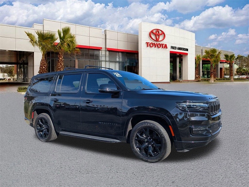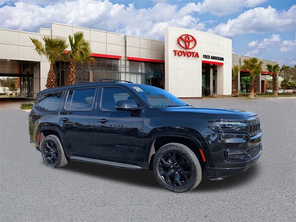 Priced below KBB Fair Purchase Price! Odometer is 33820 miles below market average! Carbide Appearance Package, Flexible Seating Group (40/20/40 2nd Row Bench Power Tip/Slide, 60/40 Power Recline 3rd Row Seat, 8-Passenger Seating, and Full Length Floor Console), Quick Order Package 25F Carbide (3 Panel Sunroof, Adjustable Roof Rail Crossbars, Black Interior Accents, Cargo Cover, Piano Black Exterior Accents, Reversible Carpet/Vinyl Cargo Mat, and Wheels: 20" x 9" Gloss Black Painted Aluminum), 10 Speakers, 118 MPH Maximum Speed Calibration, 3.55 Rear Axle Ratio, 3rd row seats: bench, 4-Wheel Disc Brakes, ABS brakes, Adjustable pedals, Air Conditioning, Alloy wheels, AM/FM radio: SiriusXM with 360L, Anti-whiplash front head restraints, Apple CarPlay/Android Auto, Audio memory, Auto-dimming door mirrors, Auto-dimming Rear-View mirror, Auto-leveling suspension, Automatic temperature control, Brake assist, Bumpers: body-color, Compass, Delay-off headlights, Driver door bin, Driver vanity mirror, Driver's Seat Mounted Armrest, Dual front impact airbags, Dual front side impact airbags, Electronic Stability Control, Emergency communication system: Wagoneer Connect, Exterior Parking Camera Rear, Four wheel independent suspension, Front anti-roll bar, Front Bucket Seats, Front Center Armrest w/Storage, Front dual zone A/C, Front fog lights, Front reading lights, Fully automatic headlights, Garage door transmitter, Genuine wood console insert, Genuine wood dashboard insert, Genuine wood door panel insert, Heated door mirrors, Heated front seats, Heated rear seats, Heated steering wheel, Illuminated entry, Knee airbag, Leather Trimmed Bucket Seats, Low tire pressure warning, Memory seat, Navigation System, Normal Duty Suspension, Occupant sensing airbag, Outside temperature display, Overhead airbag, Overhead console, Panic alarm, Passenger door bin, Passenger seat mounted armrest, Passenger vanity mirror, Pedal memory, Power adjustable front head restraints, Power door mirrors, Power driver seat, Power Liftgate, Power passenger seat, Power steering, Power windows, Radio data system, Radio: Uconnect 5 Nav w/10.1" Display, Rain sensing wipers, Rear air conditioning, Rear anti-roll bar, Rear dual zone A/C, Rear reading lights, Rear seat center armrest, Rear window defroster, Rear window wiper, Reclining 3rd row seat, Remote keyless entry, Security system, Speed control, Speed-sensing steering, Speed-Sensitive Wipers, Split folding rear seat, Steering wheel memory, Steering wheel mounted audio controls, Tachometer, Telescoping steering wheel, Tilt steering wheel, Traction control, Trip computer, Turn signal indicator mirrors, Variably intermittent wipers, Ventilated front seats, Voltmeter, and Wheels: 20" x 9.0" Premium 2 Aluminum.