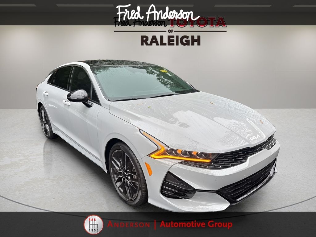 CARFAX One-Owner. Priced below KBB Fair Purchase Price! *Full Family Plan* INCLUDES OIL CHANGES FOR LIFE!, Still Under Factory Powertrain Warranty!!, Still Under Factory Warranty!!, Only One Owner and Accident Free Carfax!!, Navigation, Alloy wheels / Premium Wheels, Bluetooth, Hands-Free, Leather Seats, Local Trade, Star Safety System with Active Breaking Technologies, Keyless Entry, Keyless Start, Backup Camera, Sunroof / Panoramic Roof, We will buy your car and pay top dollar for it, even if you don't buy ours!!, USB Port, Active Sound Design, Auto Up/Down Rear Windows, Bose Premium Audio, Forward Collision Avoidance-Assist, GT1 Package, Heated Steering Wheel, Highway Driving Assist, Leather-Wrapped Shift Knob, LED Projection Headlamps, Memory Driver's Seat & Outside Mirrors, Navigation System, Navigation-Based Smart Cruise Control - Curve, Parking Collision Avoidance-Assist - Reverse, Parking Distance Warning - Forward & Reverse, Power Child Lock, Power Folding Outside Mirrors w/LED Turn Signals, Power Front Passenger Seat, Safe Exit Assist w/Lock, Smart Cruise Control w/Stop & Go, Surround View Monitor, Ventilated Front Seats. Check out all these great options GT1 Package (Active Sound Design, Auto Up/Down Rear Windows, Bose Premium Audio, Forward Collision Avoidance-Assist, Heated Steering Wheel, Highway Driving Assist, Leather-Wrapped Shift Knob, LED Projection Headlamps, Memory Driver's Seat & Outside Mirrors, Navigation-Based Smart Cruise Control - Curve, Parking Collision Avoidance-Assist - Reverse, Parking Distance Warning - Forward & Reverse, Power Child Lock, Power Folding Outside Mirrors w/LED Turn Signals, Power Front Passenger Seat, Safe Exit Assist w/Lock, Smart Cruise Control w/Stop & Go, Surround View Monitor, and Ventilated Front Seats), Navigation System, 4-Wheel Disc Brakes, 6 Speakers, ABS brakes, Air Conditioning, Alloy wheels, AM/FM radio: SiriusXM, Apple CarPlay & Android Auto, Auto High-beam Headlights, Automatic temperature control, Brake assist, Bumpers: body-color, Carpeted Floor Mats, Delay-off headlights, Driver door bin, Driver vanity mirror, Dual front impact airbags, Dual front side impact airbags, Electronic Stability Control, Emergency communication system, Four wheel independent suspension, Front anti-roll bar, Front Bucket Seats, Front Center Armrest, Front dual zone A/C, Front fog lights, Front reading lights, Fully automatic headlights, Heated door mirrors, Heated front seats, Heated Sport Bucket Seats, Illuminated entry, Knee airbag, Leather steering wheel, Low tire pressure warning, Occupant sensing airbag, Outside temperature display, Overhead airbag, Overhead console, Panic alarm, Passenger door bin, Passenger vanity mirror, Power door mirrors, Power driver seat, Power moonroof, Power steering, Power windows, Radio data system, Radio: AM/FM/MP3 Audio System, Rear anti-roll bar, Rear reading lights, Rear seat center armrest, Rear side impact airbag, Rear window defroster, Remote keyless entry, Security system, Smart Key w/ Push Button and Remote Start, Speed control, Speed-sensing steering, Split folding rear seat, Spoiler, Sport steering wheel, Steering wheel mounted audio controls, SynTex Seat Trim, Tachometer, Telescoping steering wheel, Tilt steering wheel, Traction control, Trip computer, Turn signal indicator mirrors, Variably intermittent wipers, and Wheels: 19" Gloss Black Machined Finish AlloyStop by and test drive today. Let us show you how affordable we can make it. Remember, we always give you more for your trade and we will buy your vehicle even if you don't buy one from us. See online @ www.FredAndersonToyota.com or see in person @ Fred Anderson Toyota 9101 Glenwood Ave. Raleigh NC, 27617. Recent Arrival! 2024 Kia K5 GT FWD Wolf Gray 8-Speed DCT