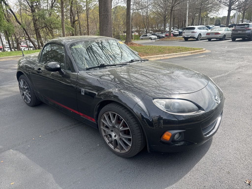 Bluetooth, Hands-Free, We will buy your car and pay top dollar for it, even if you don't buy ours!!, Black Cloth. Check out all these great options Black Cloth, 17" x 7" Dark Gunmetal Aluminum Alloy Wheels, 4-Wheel Disc Brakes, 6 Speakers, ABS brakes, Air Conditioning, Alloy wheels, AM/FM radio, AM/FM Stereo w/Single CD Player, Bumpers: body-color, CD player, Cloth Upholstery, Convertible HardTop, Convertible roof lining, Convertible roof wind blocker, Driver door bin, Driver vanity mirror, Dual front impact airbags, Dual front side impact airbags, Electronic Stability Control, Four wheel independent suspension, Front anti-roll bar, Front Bucket Seats, Front Center Armrest, Front fog lights, Glass rear window, Leather Shift Knob, Low tire pressure warning, Occupant sensing airbag, Outside temperature display, Panic alarm, Passenger door bin, Passenger vanity mirror, Power convertible roof, Power door mirrors, Power steering, Power windows, Rear anti-roll bar, Rear window defroster, Reclining Front Bucket Seats, Remote keyless entry, Speed control, Speed-sensing steering, Sport steering wheel, Steering wheel mounted audio controls, Tachometer, Tilt steering wheel, Traction control, and Trip computerStop by and test drive today. Let us show you how affordable we can make it. Remember, we always give you more for your trade and we will buy your vehicle even if you don't buy one from us. See online @ www.FredAndersonToyota.com or see in person @ Fred Anderson Toyota 9101 Glenwood Ave. Raleigh NC, 27617. Recent Arrival! 2013 Mazda Miata Club RWD Sparkling Black 6-Speed Automatic Sport