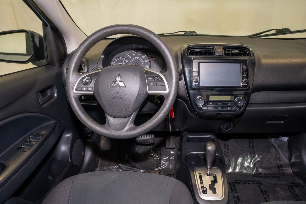 Check out all these great options 4 Speakers, ABS brakes, Air Conditioning, AM/FM radio, Automatic temperature control, Brake assist, Bumpers: body-color, Cloth Fabric Seat Trim, Driver door bin, Driver vanity mirror, Dual front impact airbags, Dual front side impact airbags, Electronic Stability Control, Exterior Parking Camera Rear, Front anti-roll bar, Front Bucket Seats, Front reading lights, Front wheel independent suspension, Illuminated entry, Knee airbag, Low tire pressure warning, Occupant sensing airbag, Overhead airbag, Panic alarm, Passenger door bin, Power door mirrors, Power steering, Power windows, Radio: 7" Display Audio, Rear seat center armrest, Rear window defroster, Remote keyless entry, Speed control, Steering wheel mounted audio controls, Tachometer, Tilt steering wheel, Traction control, Trip computer, Variably intermittent wipers, and Wheels: 14" Steel w/Wheel Covers *** AVAILABLE AT FRED ANDERSON NISSAN OF RALEIGH. CALL US NOW 919-787-0254*** Mitsubishi Mirage G4 Starlight Silver Metallic ES FWD CVT 1.2L 3-Cylinder DOHC MIVEC