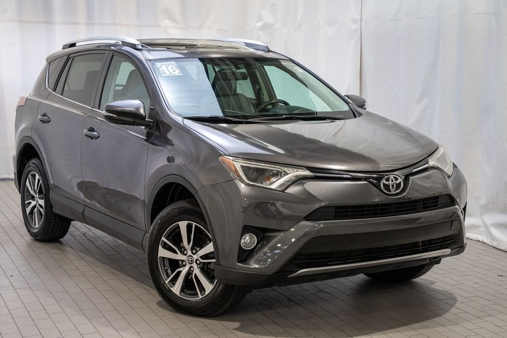 Priced below KBB Fair Purchase Price! *Full Family Plan* INCLUDES OIL CHANGES FOR LIFE!, Navigation, Alloy wheels / Premium Wheels, Bluetooth, Hands-Free, Local Trade, Star Safety System with Active Breaking Technologies, Keyless Entry, Backup Camera, Sunroof / Panoramic Roof, We will buy your car and pay top dollar for it, even if you don't buy ours!!, USB Port, Ash w/Fabric Seat Trim, Navigation System. Odometer is 69324 miles below market average! Check out all these great options Ash w/Fabric Seat Trim, Navigation System, 3.815 Axle Ratio, 4-Wheel Disc Brakes, 6 Speakers, ABS brakes, Adaptive Cruise Control, Air Conditioning, Alloy wheels, AM/FM radio: SiriusXM, Automatic temperature control, Brake assist, Bumpers: body-color, Driver door bin, Driver vanity mirror, Dual front impact airbags, Dual front side impact airbags, Electronic Stability Control, Exterior Parking Camera Rear, Fabric Seat Trim, Four wheel independent suspension, Front anti-roll bar, Front Bucket Seats, Front Center Armrest, Front dual zone A/C, Front fog lights, Front reading lights, Front Sport Seats, Heated door mirrors, Illuminated entry, Knee airbag, Leather steering wheel, Low tire pressure warning, Occupant sensing airbag, Outside temperature display, Overhead airbag, Overhead console, Panic alarm, Passenger door bin, Passenger vanity mirror, Power door mirrors, Power Liftgate, Power moonroof, Power steering, Power windows, Radio data system, Radio: Entune Audio Plus AM/FM/MP3/WMA Playback, Rear anti-roll bar, Rear seat center armrest, Rear window defroster, Rear window wiper, Remote keyless entry, Roof rack: rails only, Speed control, Speed-sensing steering, Split folding rear seat, Spoiler, Steering wheel mounted audio controls, Tachometer, Telescoping steering wheel, Tilt steering wheel, Traction control, Trip computer, Turn signal indicator mirrors, Variably intermittent wipers, and Wheels: 17" x 7.0J 5-Spoke Superchrome AlloyStop by and test drive today. Let us show you how affordable we can make it. Remember, we always give you more for your trade and we will buy your vehicle even if you don't buy one from us. See online @ www.FredAndersonToyota.com or see in person @ Fred Anderson Toyota 9101 Glenwood Ave. Raleigh NC, 27617. 2016 Toyota RAV4 XLE FWD Magnetic Gray Metallic 6-Speed Automatic