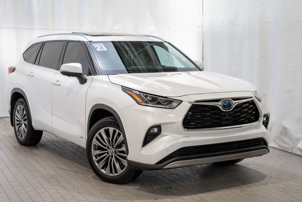 CARFAX One-Owner. *Full Family Plan* INCLUDES OIL CHANGES FOR LIFE!, Still Under Factory Powertrain Warranty!!, Only One Owner and Accident Free Carfax!!, Navigation, Alloy wheels / Premium Wheels, Bluetooth, Hands-Free, Leather Seats, 3rd Row Seats, Star Safety System with Active Breaking Technologies, Keyless Entry, Keyless Start, Backup Camera, Sunroof / Panoramic Roof, We will buy your car and pay top dollar for it, even if you don't buy ours!!, USB Port, 2.5L I4 PDI Hybrid DOHC 16V LEV3-SULEV30, Navigation system: Drive Connect Cloud Navigation (1-year trial subscription). Odometer is 8506 miles below market average! Check out all these great options 2.5L I4 PDI Hybrid DOHC 16V LEV3-SULEV30, Navigation system: Drive Connect Cloud Navigation (1-year trial subscription), 11 Speakers, 20" Painted Alloy Wheels, 3rd row seats: split-bench, 4-Wheel Disc Brakes, ABS brakes, Air Conditioning, Alloy wheels, AM/FM radio: SiriusXM, Apple CarPlay/Android Auto, Auto High-beam Headlights, Auto-dimming Rear-View mirror, Automatic temperature control, Axle Ratio: TBD, Brake assist, Bumpers: body-color, Delay-off headlights, Driver door bin, Driver vanity mirror, Dual front impact airbags, Dual front side impact airbags, Electronic Stability Control, Emergency communication system: Safety Connect (up to 10-year trial subscription), Four wheel independent suspension, Front anti-roll bar, Front Bucket Seats, Front Center Armrest, Front dual zone A/C, Front fog lights, Front reading lights, Fully automatic headlights, Garage door transmitter: HomeLink, Heads-Up Display, Heated door mirrors, Heated Front Bucket Seats, Heated front seats, Heated rear seats, Heated steering wheel, High Grade LED, Illuminated entry, Knee airbag, Leather Seat Trim, Leather Shift Knob, Leather steering wheel, Low tire pressure warning, Memory seat, Occupant sensing airbag, Outside temperature display, Overhead airbag, Overhead console, Panic alarm, Panoramic Moonroof, Panoramic View Monitor, Passenger door bin, Passenger vanity mirror, Power door mirrors, Power driver seat, Power Liftgate, Power moonroof, Power passenger seat, Power steering, Power windows, Radio: 12.3" Toyota Audio Multimedia w/JBL Premium, Rain sensing wipers, Rear air conditioning, Rear anti-roll bar, Rear reading lights, Rear window defroster, Rear window wiper, Reclining 3rd row seat, Remote keyless entry, Roof rack: rails only, Security system, Speed control, Speed-sensing steering, Split folding rear seat, Spoiler, Steering wheel mounted audio controls, Telescoping steering wheel, Tilt steering wheel, Traction control, Trip computer, Turn signal indicator mirrors, Variably intermittent wipers, and Ventilated front seatsStop by and test drive today. Let us show you how affordable we can make it. Remember, we always give you more for your trade and we will buy your vehicle even if you don't buy one from us. See online @ www.FredAndersonToyota.com or see in person @ Fred Anderson Toyota 9101 Glenwood Ave. Raleigh NC, 27617. Recent Arrival! 2023 Toyota Highlander Hybrid Platinum AWD Wind Chill Pearl eCVT