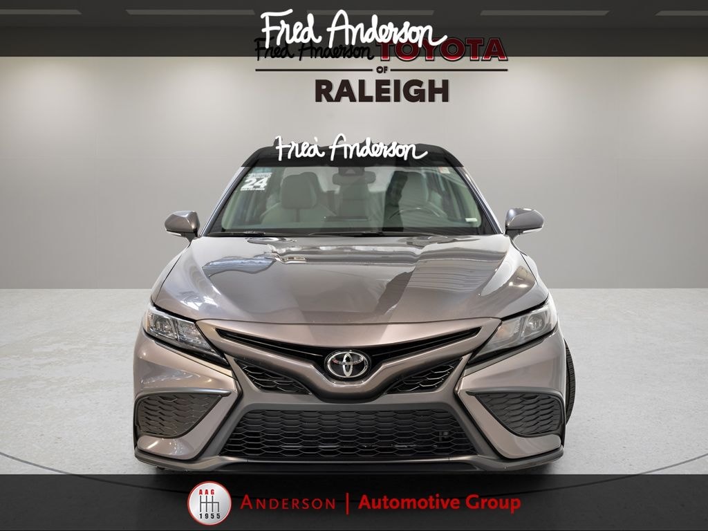 Clean CARFAX. Priced below KBB Fair Purchase Price! *Full Family Plan* INCLUDES OIL CHANGES FOR LIFE!, Still Under Factory Powertrain Warranty!!, Accident Free Carfax!!, Alloy wheels / Premium Wheels, Bluetooth, Hands-Free, Star Safety System with Active Breaking Technologies, Keyless Entry, Keyless Start, Backup Camera, We will buy your car and pay top dollar for it, even if you don't buy ours!!, USB Port, Ash w/Sport SofTex Seat Trim w/Fabric Inserts, ABS brakes, Active Cruise Control, Alloy wheels, Electronic Stability Control, Front dual zone A/C, Heated door mirrors, Illuminated entry, Low tire pressure warning, Remote keyless entry, Traction control. Check out all these great options Ash w/Sport SofTex Seat Trim w/Fabric Inserts, ABS brakes, Active Cruise Control, Alloy wheels, Electronic Stability Control, Front dual zone A/C, Heated door mirrors, Illuminated entry, Low tire pressure warning, Remote keyless entry, Traction control, 18" x 8J Alloy Wheels, 4-Wheel Disc Brakes, 6 Speakers, Air Conditioning, AM/FM radio: SiriusXM, Apple CarPlay/Android Auto, Auto High-beam Headlights, Automatic temperature control, Brake assist, Bumpers: body-color, Delay-off headlights, Driver door bin, Driver vanity mirror, Dual front impact airbags, Dual front side impact airbags, Emergency communication system: Safety Connect (1-year trial), Exterior Parking Camera Rear, Four wheel independent suspension, Front anti-roll bar, Front Bucket Seats, Front Center Armrest, Front reading lights, Fully automatic headlights, Knee airbag, Leather steering wheel, Occupant sensing airbag, Outside temperature display, Overhead airbag, Overhead console, Panic alarm, Passenger door bin, Passenger vanity mirror, Power door mirrors, Power driver seat, Power steering, Power windows, Radio data system, Radio: Audio, Rear anti-roll bar, Rear seat center armrest, Rear side impact airbag, Rear window defroster, Security system, Speed control, Speed-sensing steering, Split folding rear seat, Spoiler, Sport SofTex Seat Trim w/Fabric Inserts, Steering wheel mounted audio controls, Tachometer, Telescoping steering wheel, Tilt steering wheel, Trip computer, Turn signal indicator mirrors, and Variably intermittent wipersStop by and test drive today. Let us show you how affordable we can make it. Remember, we always give you more for your trade and we will buy your vehicle even if you don't buy one from us. See online @ www.FredAndersonToyota.com or see in person @ Fred Anderson Toyota 9101 Glenwood Ave. Raleigh NC, 27617. 2024 Toyota Camry SE FWD Predawn Gray Mica 8-Speed Automatic